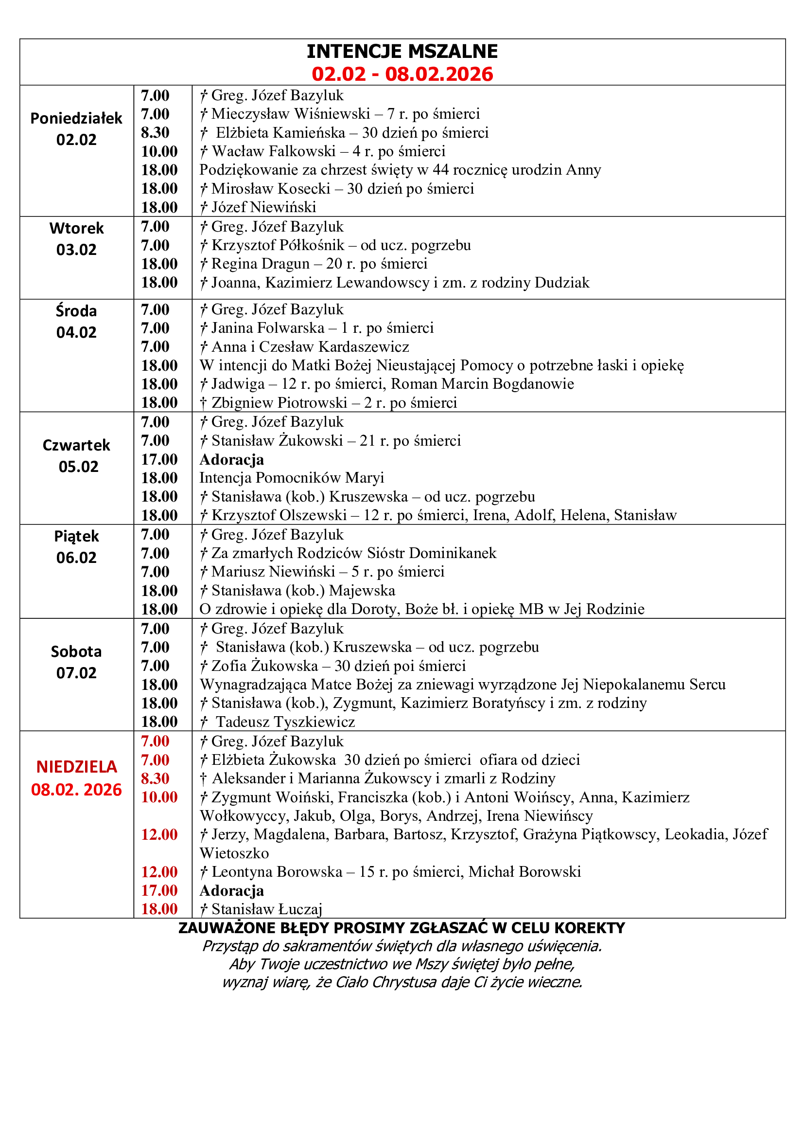 Intencje Mszy Św.